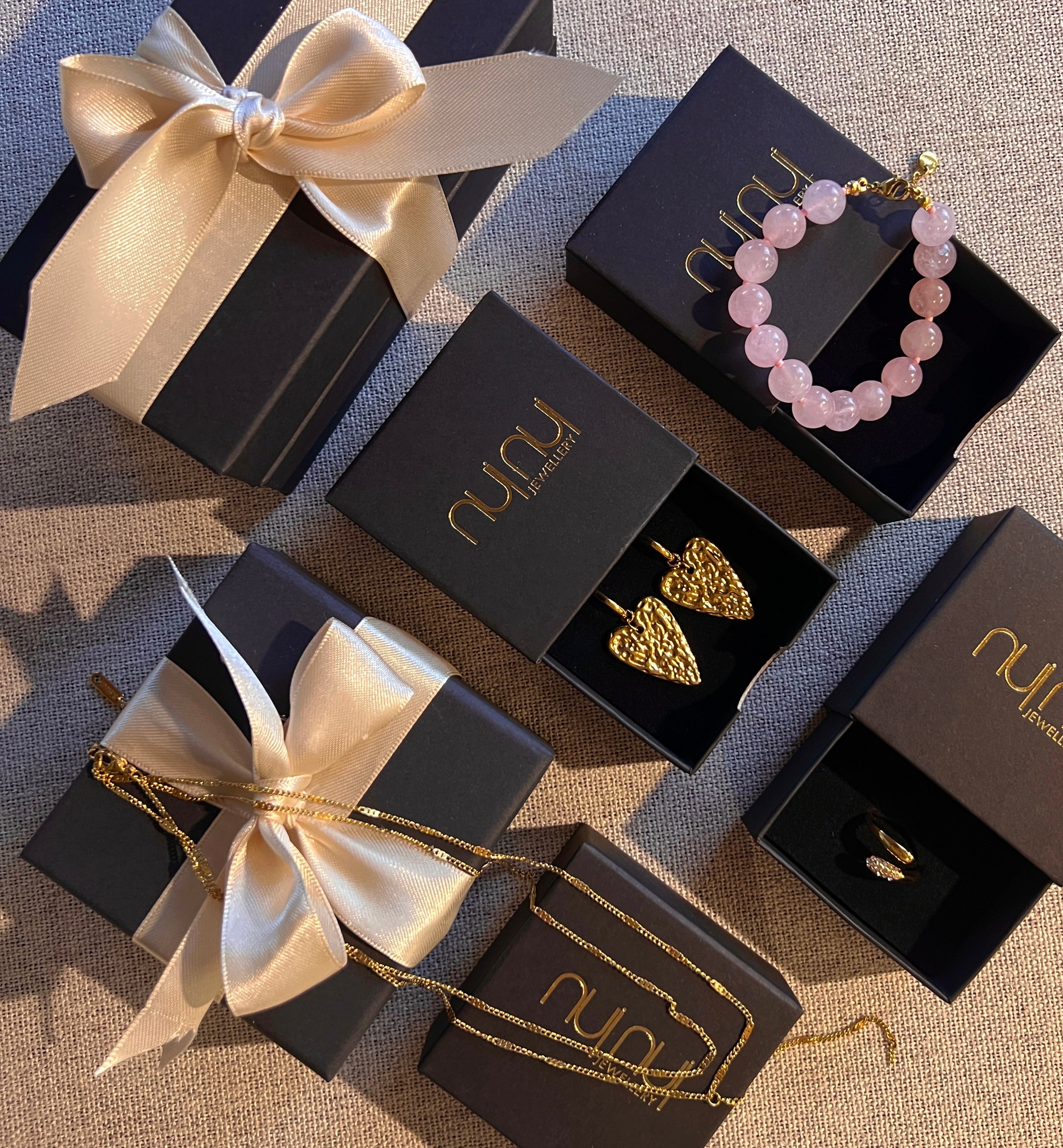 Der er store besparelser på pakkerne, og du kan vælge lige den der passer til dig. Pakken bliver leveret i fire smykkeæsker, så du vælger selv, om du vil beholde dem alle, eller dele dem ud som gaver.