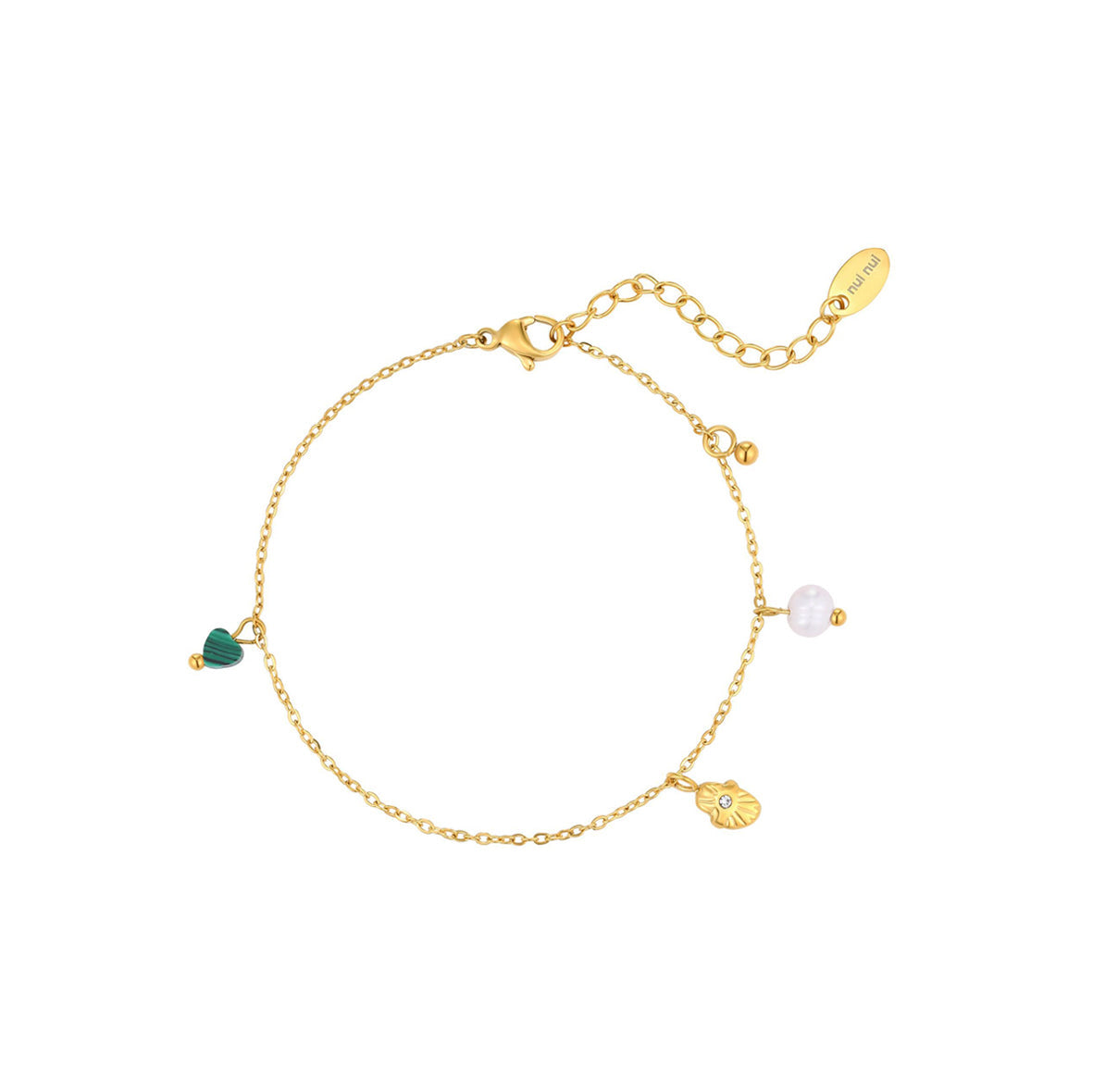 18k guldbelagt armbånd med malakit og ferskvandsperle.