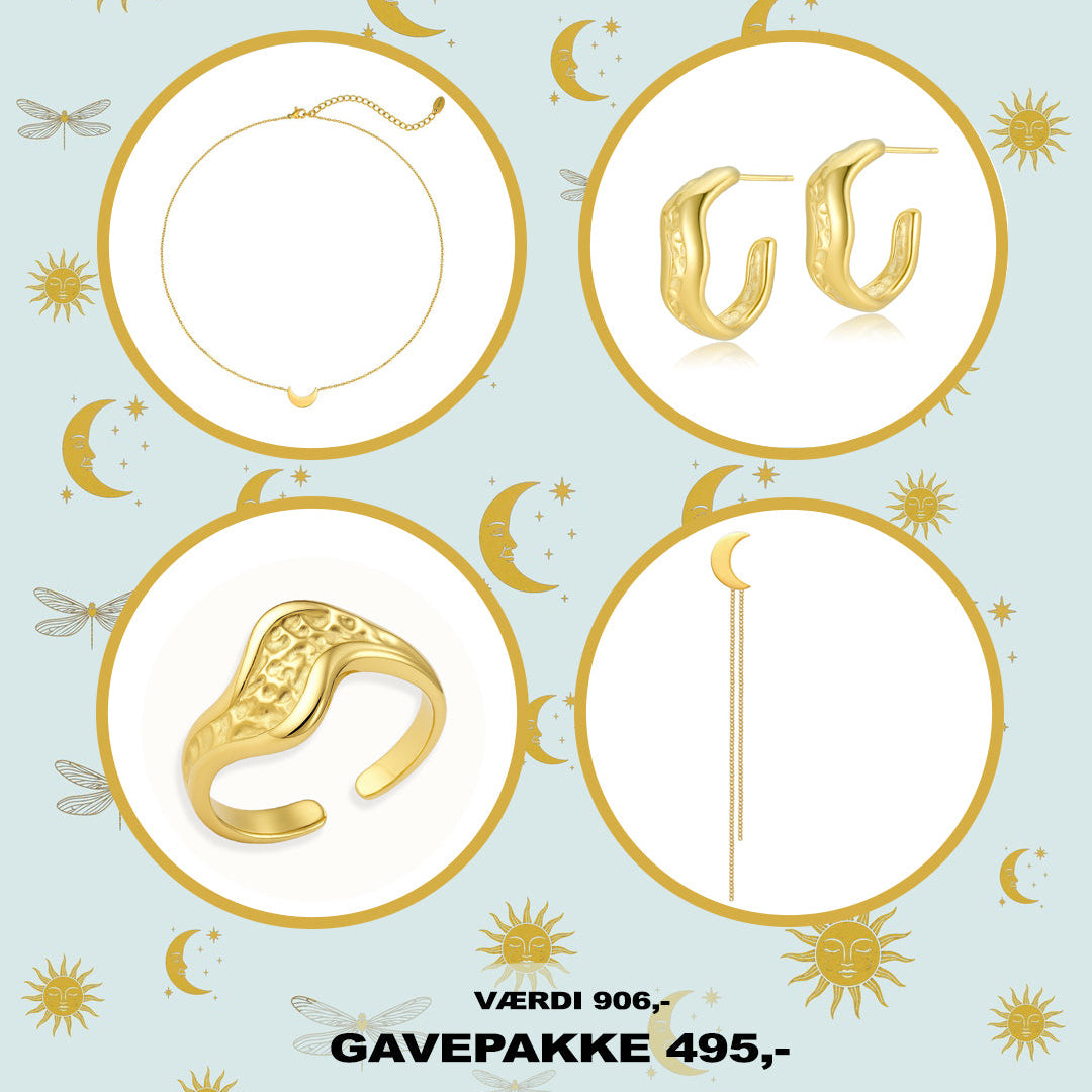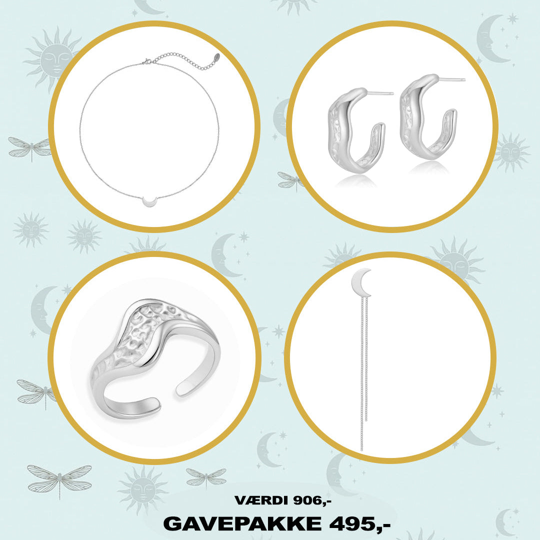 Der er store besparelser på pakkerne, og du kan vælge lige den der passer til dig. Pakken bliver leveret i fire smykkeæsker, så du vælger selv, om du vil beholde dem alle, eller dele dem ud som gaver.