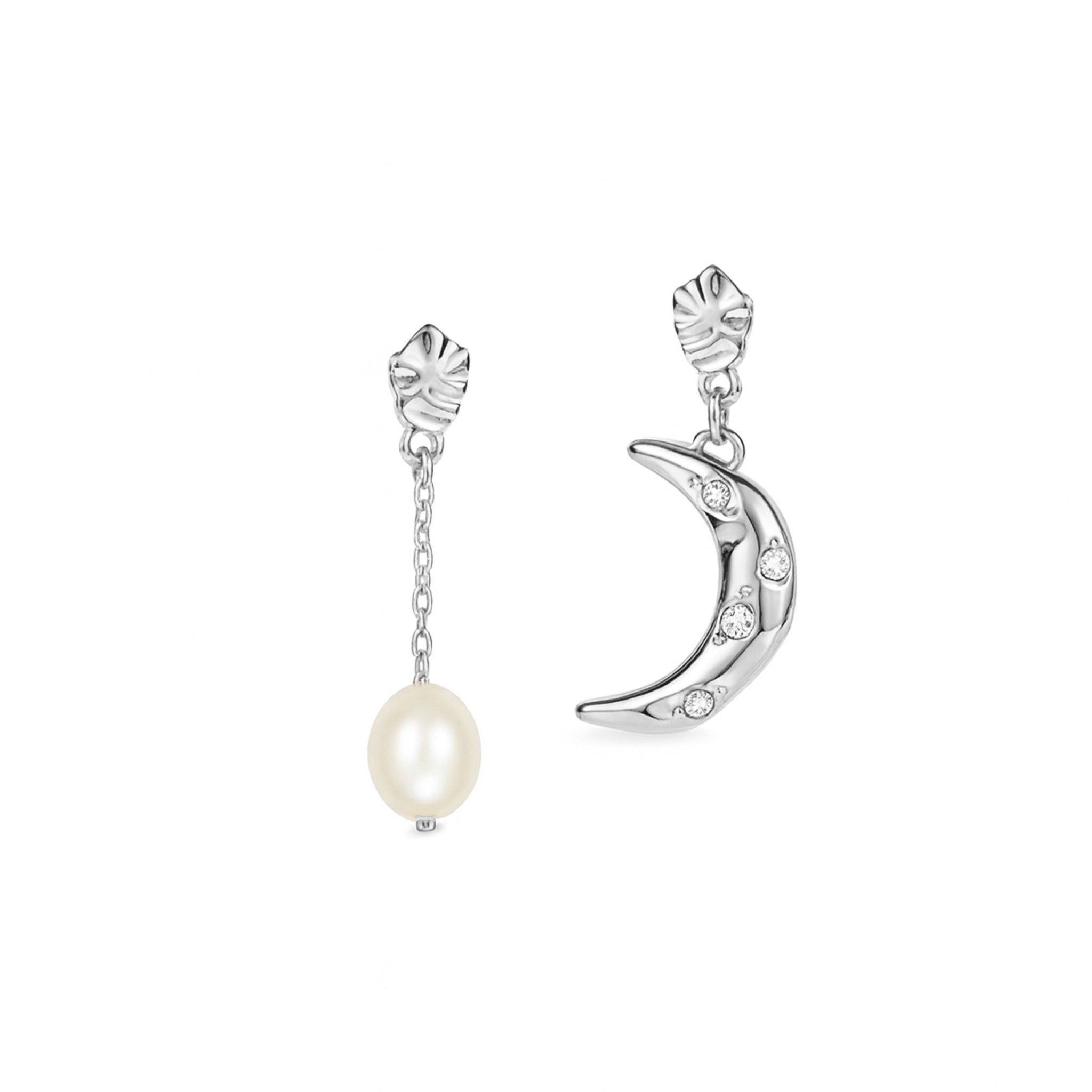 Galatea Hvidguld Øreringe med Ferskvandsperler Og Måne