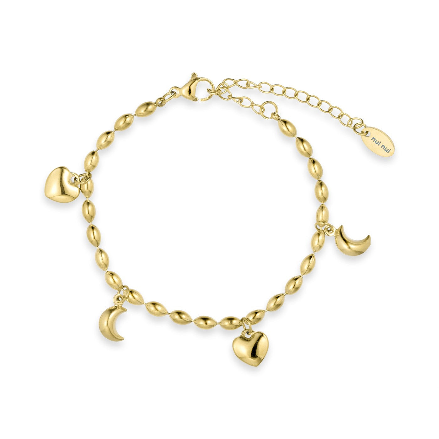 Nui Nui er smykker lavet i Rustfrit Stål og forgyldt med 18 karat guld. Smykkerne er nikkelfri og blyfri, jvf. dansk lovgivning.