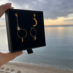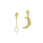 18k guldbelagt universe øreringe med ferskvandsperler og måne.