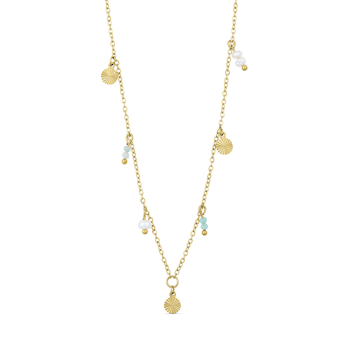 Lyra halskæde med sten og ferskvandsperler