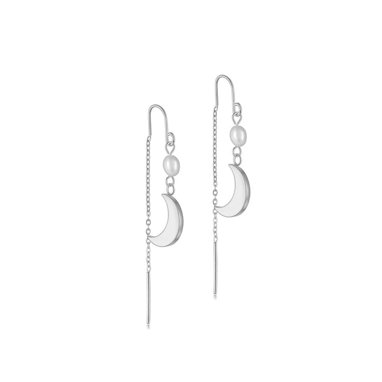 18k hvidguld belagt Calia øreringe med måne og ferskvandsperle.