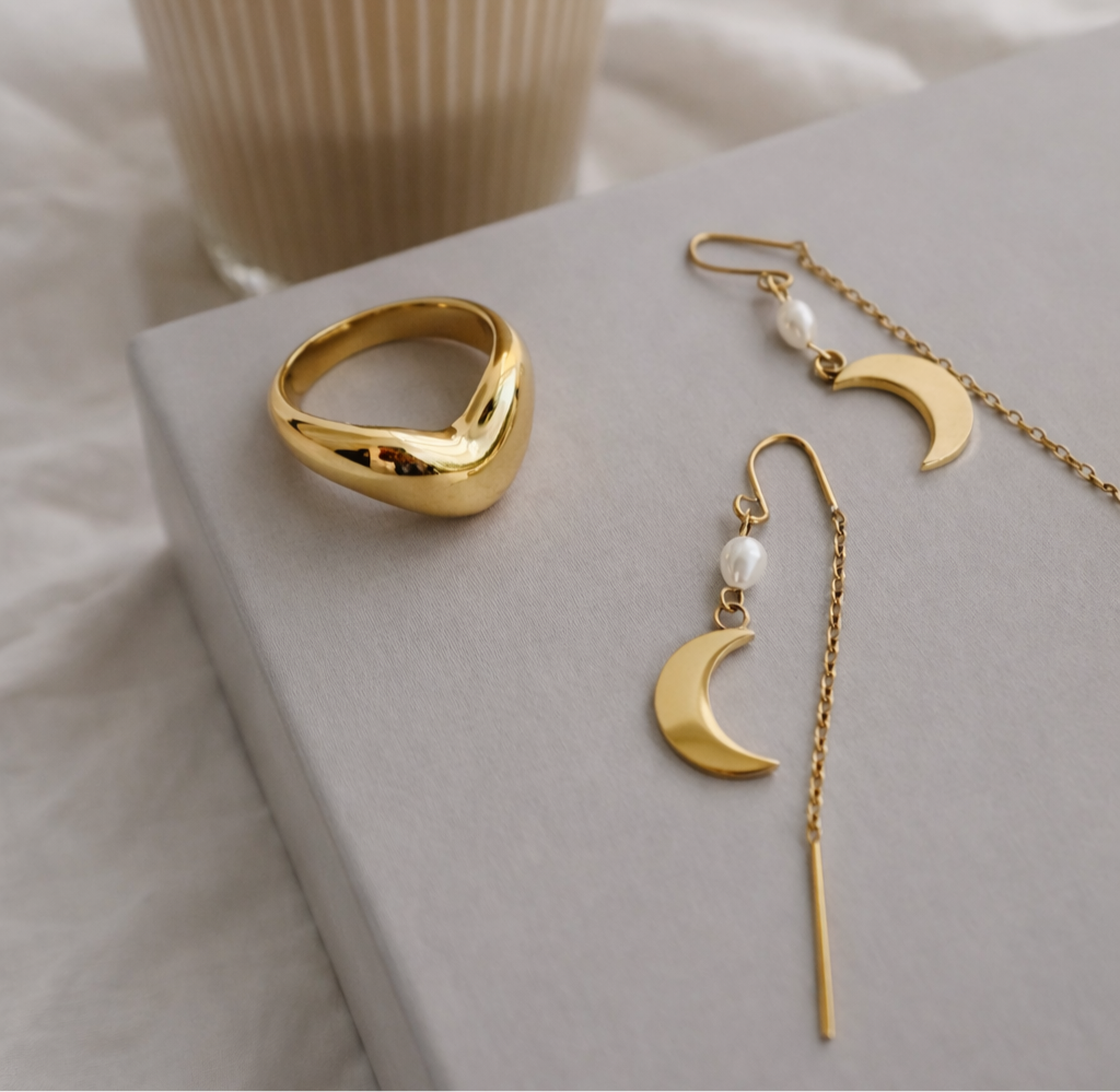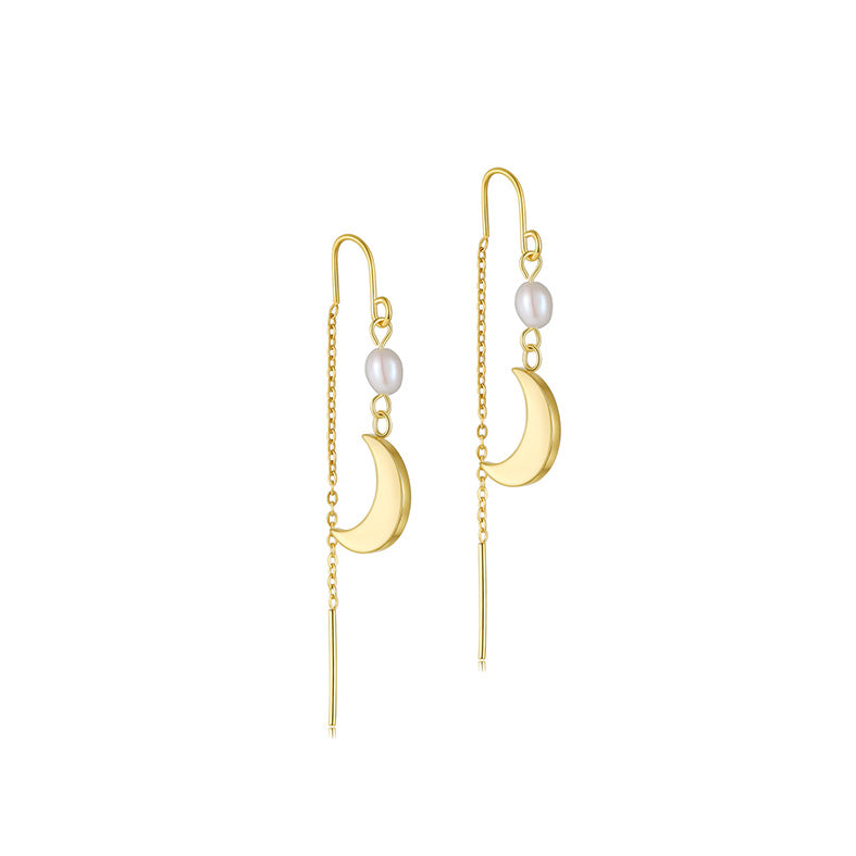 18k guldbelagt Calia øreringe med måne og ferskvandsperle.
