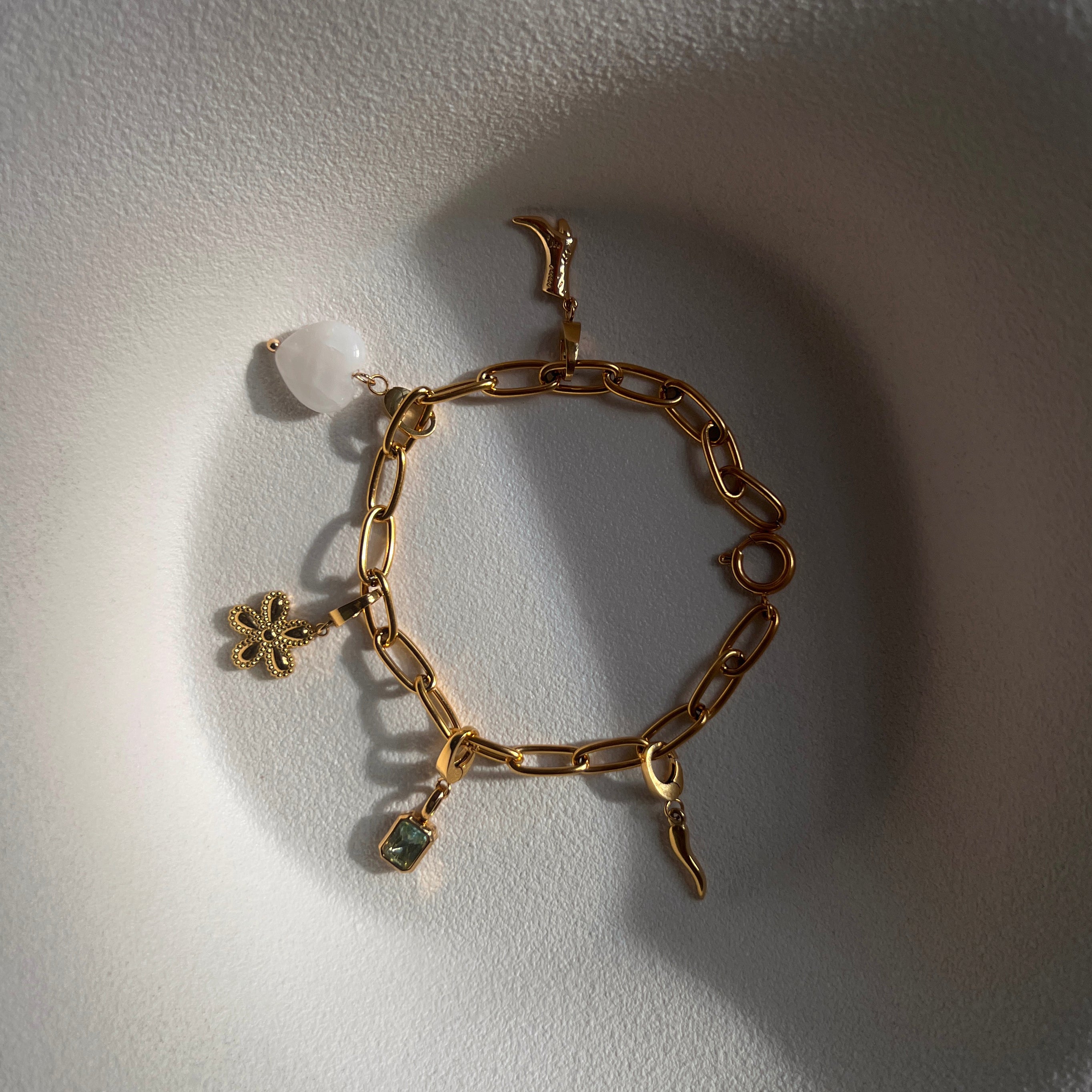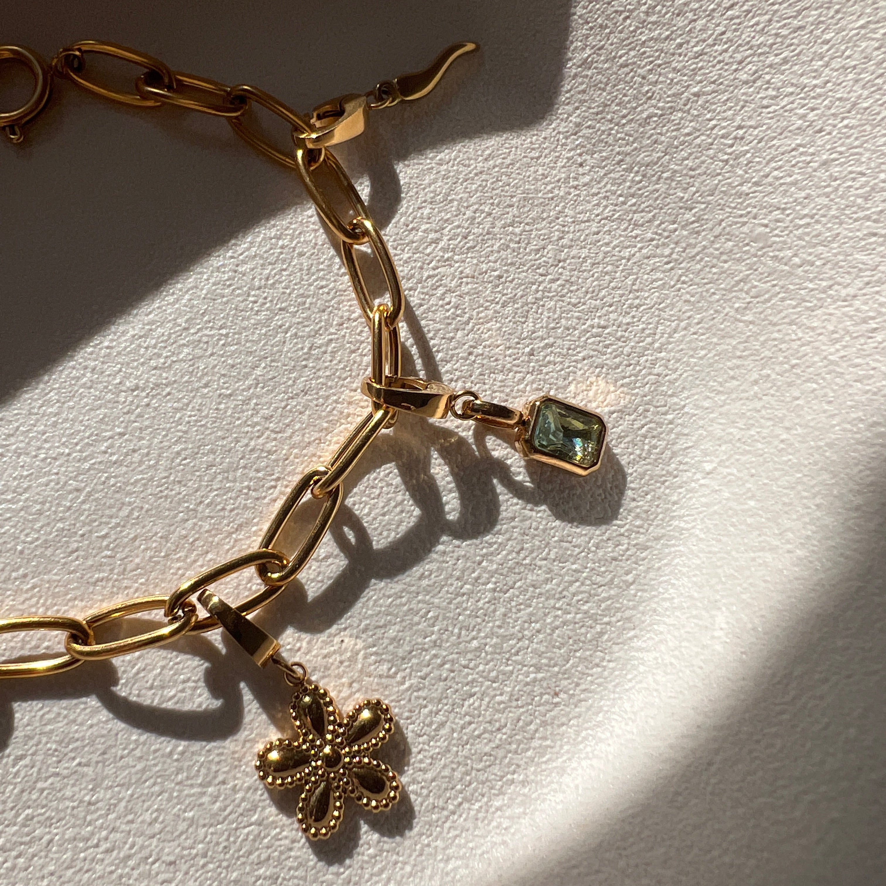 Charm glowing green forgyldt med 18k guld.