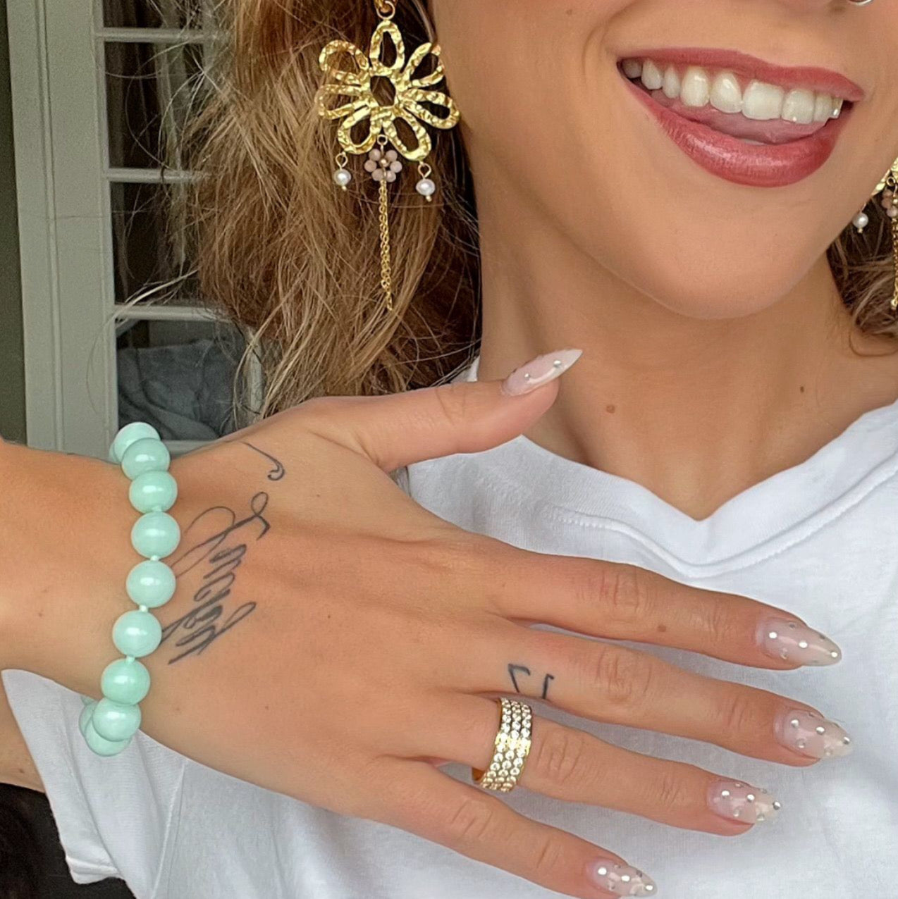18k guldbelagt armbånd med amazonitkvarts.