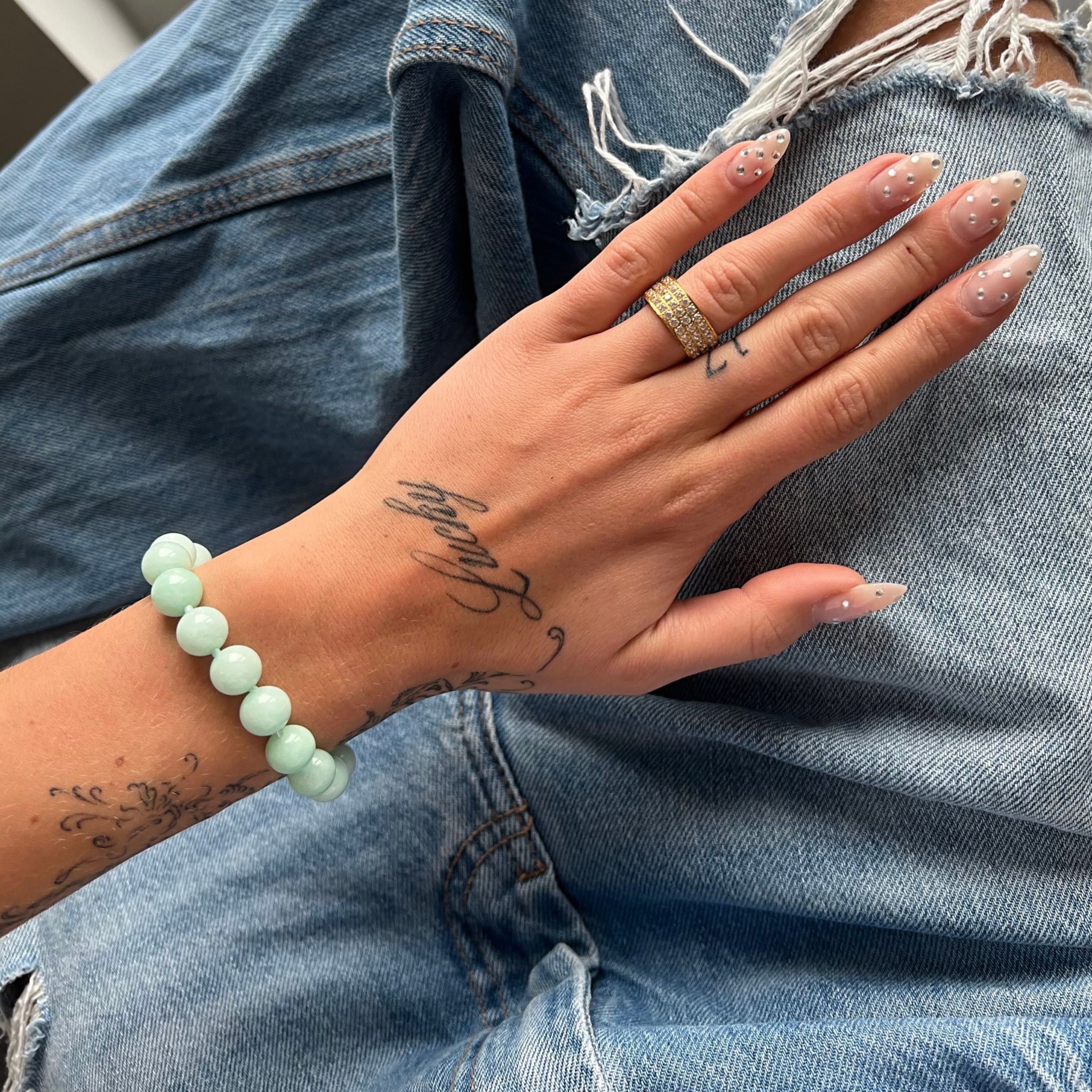Da stenene måler 10mm skal man bruge længere armbåndslængde en normalt