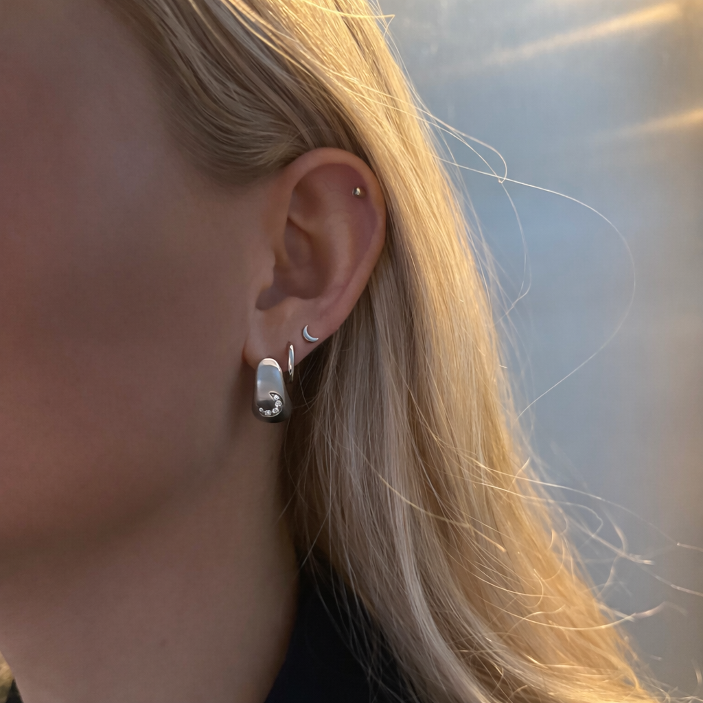 Moon Drip Hvidguld Øreringe