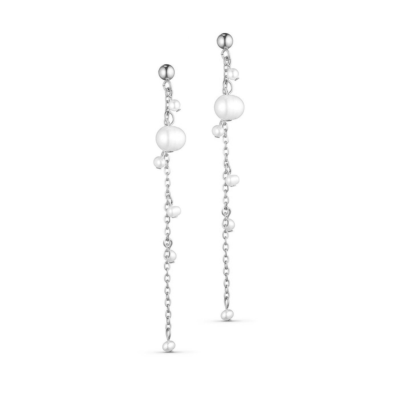 Naomi Elegante Hvidguld Kæde Øreringe med Ferskvandsperler